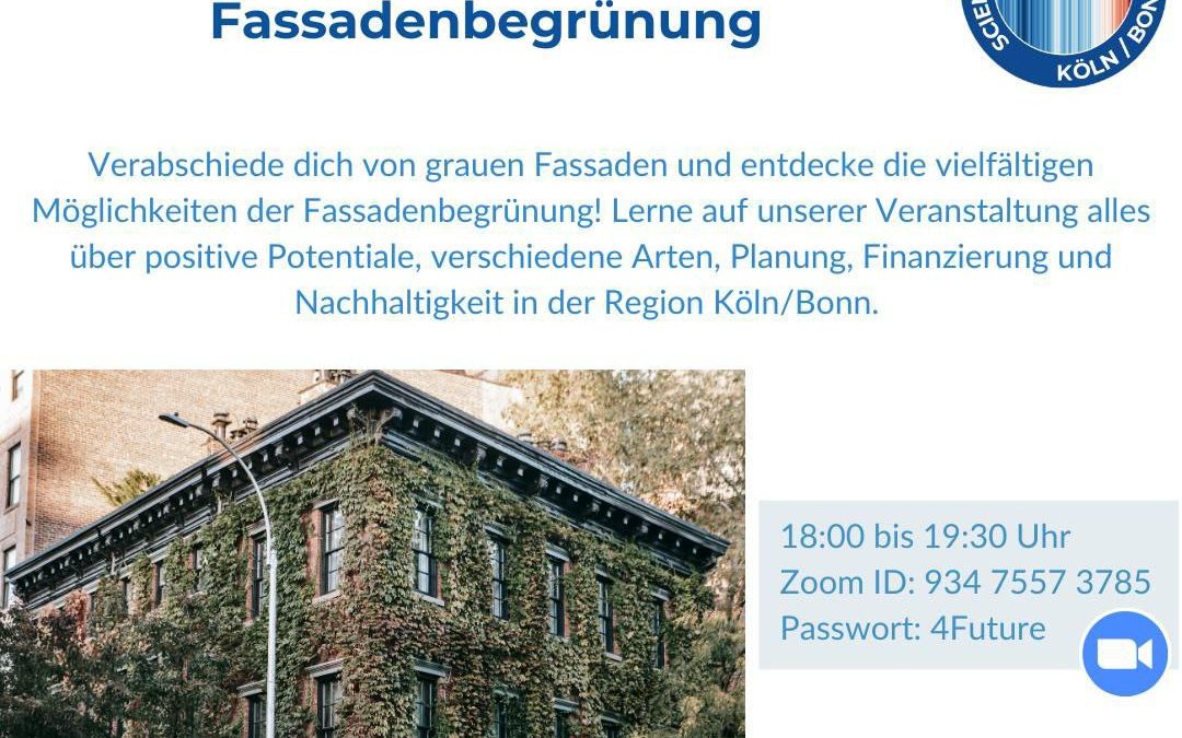 Entdecke die Möglichkeiten der Fassadenbegrünung und wie sie dein Zuhause oder Büro in eine grüne Oase verwandeln kann. Ausgehend von den positiven Effekten des Fassadengrüns auf das Stadtklima, die CO2-Reduktion sowie die NOx- und Feinstaubabsorption, werden auf unserer Veranstaltung Potentiale und Beispiele der Begrünung mit Efeu, Moos und Co. vorgestellt.