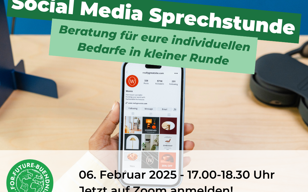 Egal ob Strategie, Inhalte oder Reichweite – in unserer Online Social Media Sprechstunde bekommst du individuelle Beratung in kleiner Runde! Unser erfahrener Coach Jounes geht gezielt auf deine Herausforderungen ein und gibt dir wertvolle Tipps für deinen Online-Aktivismus.